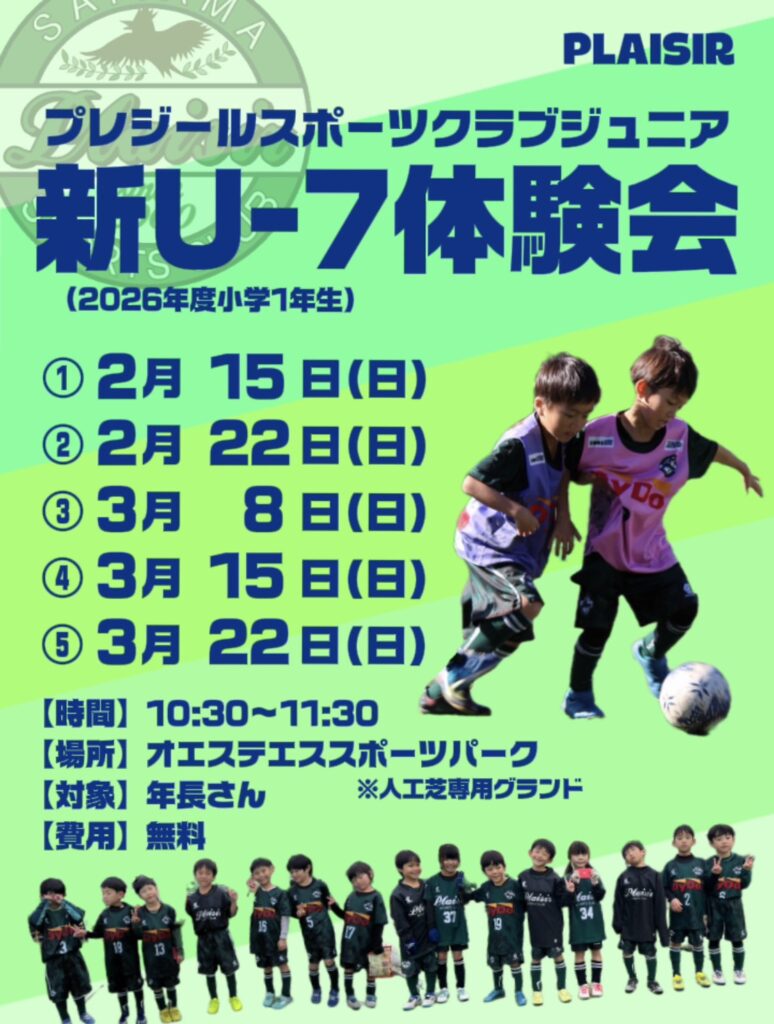 プレジール=フランス語で『楽しむ』の意。まずはサッカーを大好きになって楽しむことが大事。経験豊富なスタッフ陣が選手たちの意欲と可能性を引き出し、熱く指導します。